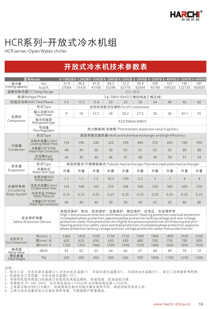 6、為保證使用安全,機組內(nèi)置漏電保護器、相位保護、過載保護、電流保護;系統(tǒng)安裝了高、低壓保護傳感器,為防止缺水或循環(huán)水系統(tǒng)內(nèi)部結冰,機組安裝了流量開關和低液位保護裝置。